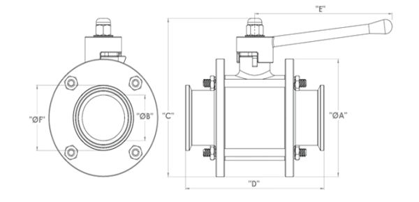 The Flocon Industries sanitary ball valve consists of a valve body and two body flanges, a ball fitting into sealing seats, and a stem connecting to a manual handle. The valve comes with standard Triclover ends, SMS union ends and Butt weld ends. Standard design enables cleaning and product recovery using pigging systems. Flocon Three Piece Design ball valve is designed for use in sanitary applications with OD Standards.